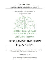 The British Cactus & Succulent Society (BCSS) has around 100 branches throughout the country. The Cambridge & District Branch meets on the second Wednesday of each month (except February) in the Memorial Hall, Woollards Lane, Great Shelford, Cambridge, CB22 5LZ.